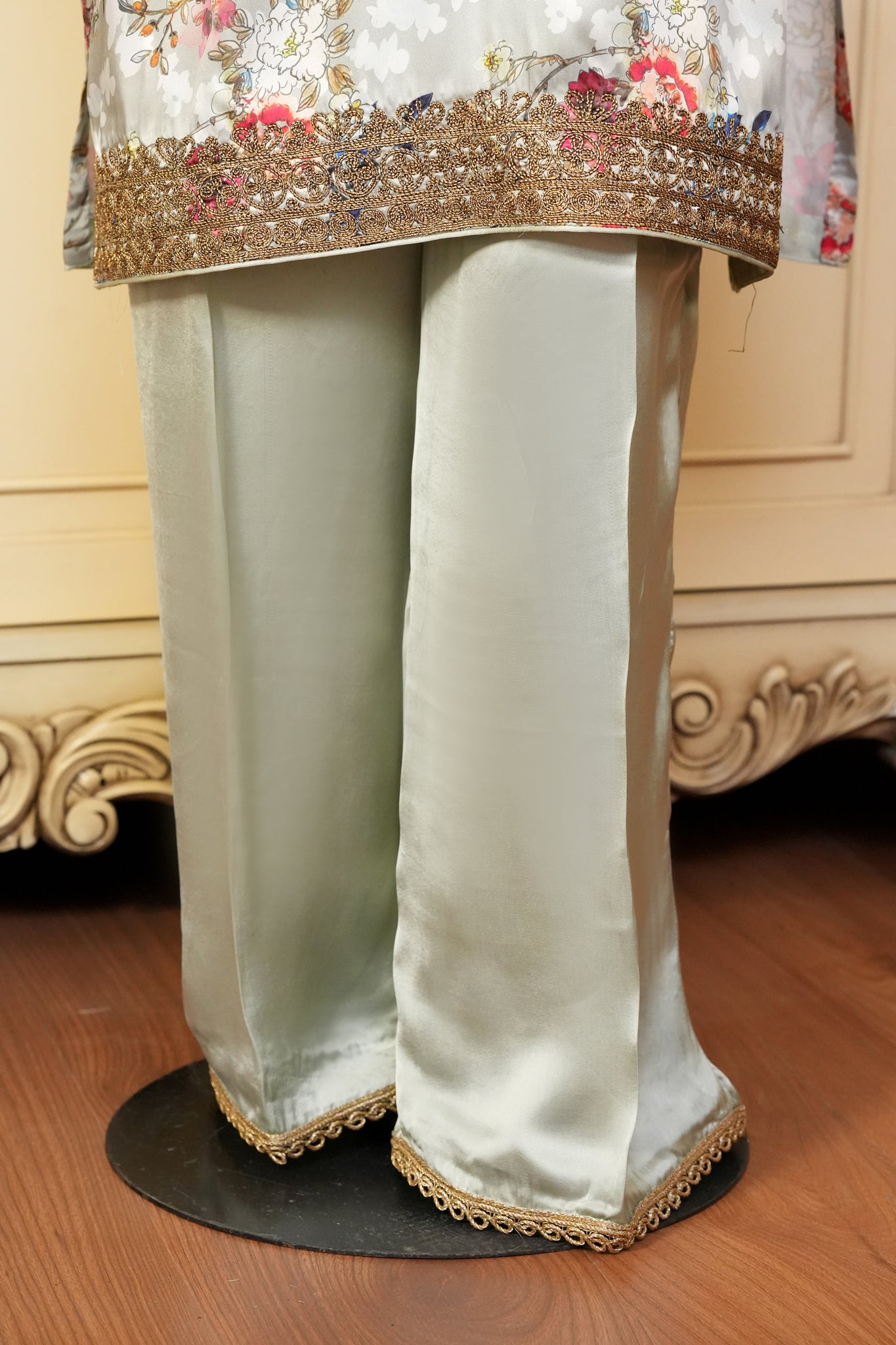 The dupatta is made from a sheer and lightweight fabric, and carries the same floral print as the main outfit, creating a cohesive look.